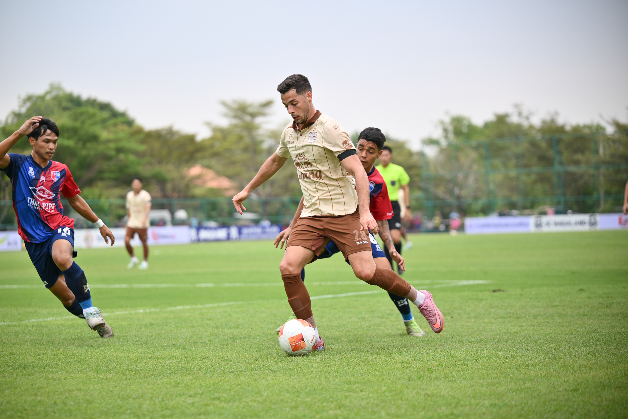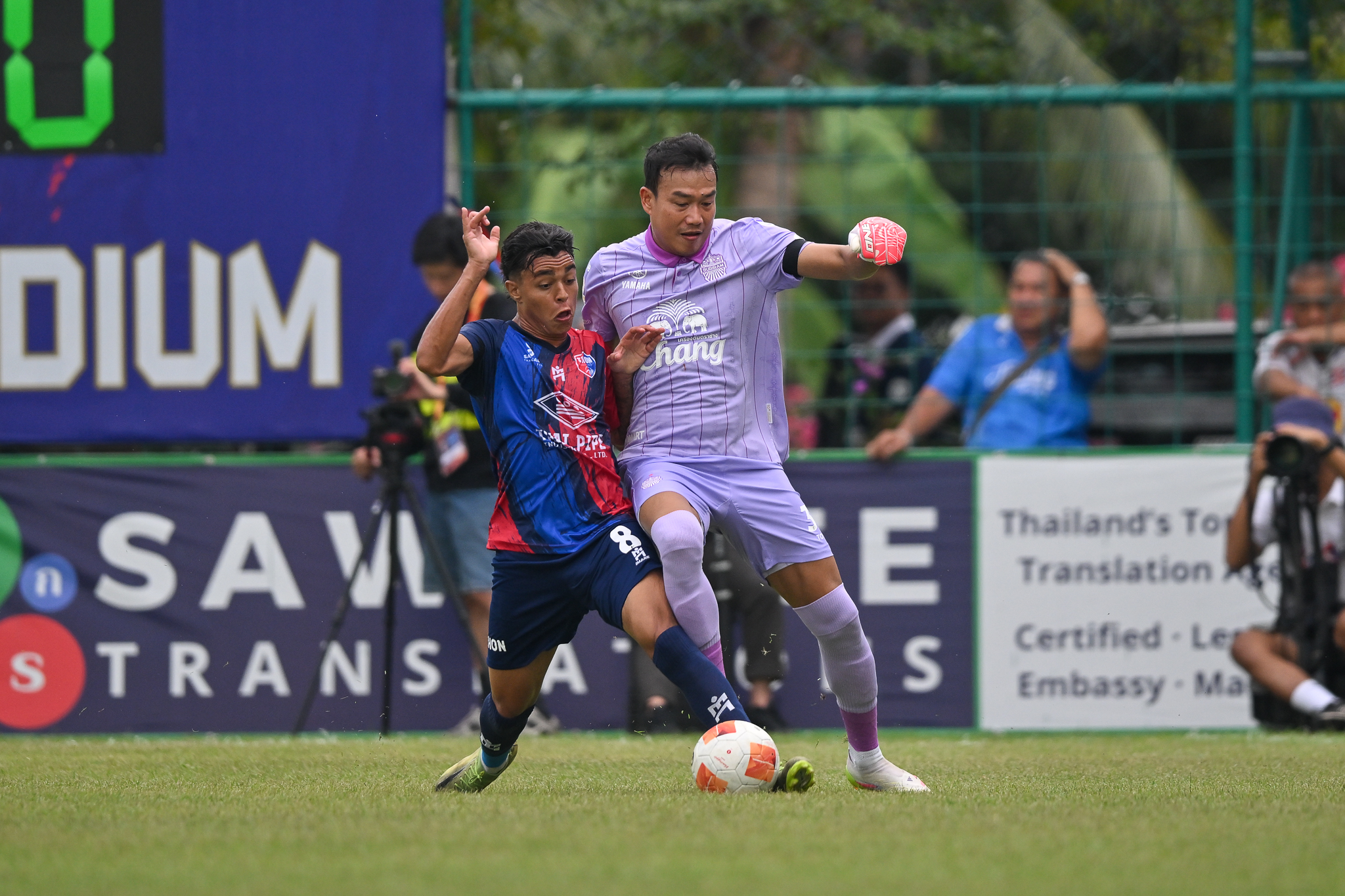 นาทีที่ 23 กิลเยร์เม บิสโซลี หาจังหวะได้โอกาสปั่นโค้งจากบริเวณหน้ากรอบเขตโทษ แต่เป็นทาง พชรธน เฉลิมทิศ ที่โชว์ซุปเปอร์เซฟปัดลูกยิงของศูนย์หน้าชาวบราซิลเอาไว้ได้