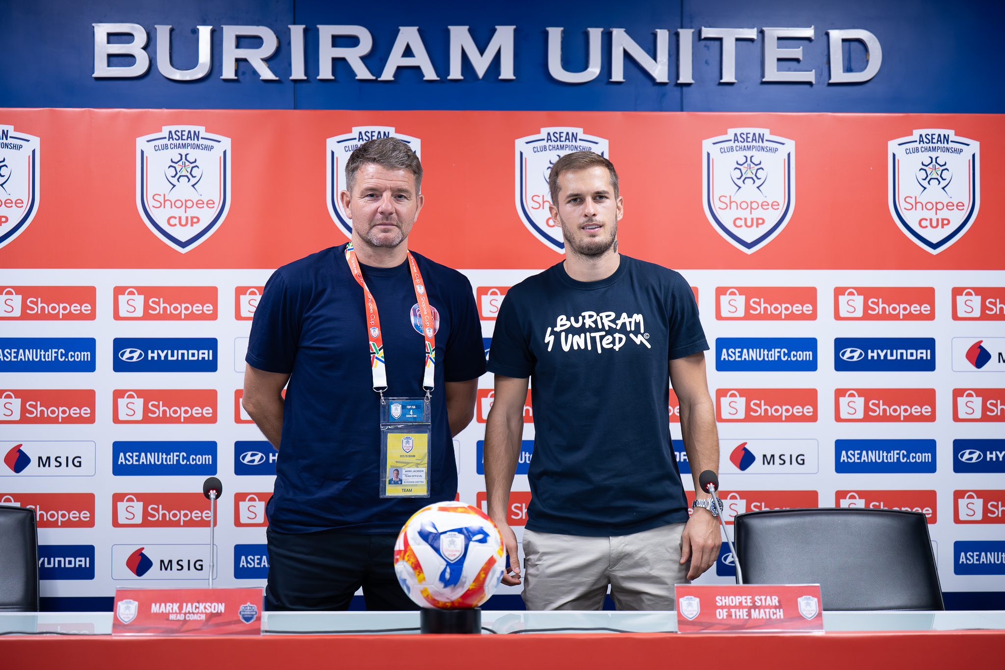 มาร์ค แจ็คสัน หัวหน้าผู้ฝึกสอน บุรีรัมย์ ยูไนเต็ด พูดถึงความรู้สึก หลังทีมผ่านเข้ารอบต่อไปได้สำเร็จว่า “เราทำได้ตามเป้าหมาย คือ การเป็นจ่าฝูงของกลุ่ม สองเกมล่าสุดในรายการนี้ ค่อนข้างเป็นแมตช์ที่กดดัน เพราะเราต้องเก็บให้ได้ 6 คะแนนเต็ม แต่เราก็ทำผลงานกันได้ยอดเยี่ยมมาก และผ่านกันมาได้ ด้วยการเป็นแชมป์กลุ่ม ส่วนเรื่องของการเตรียมตัวในรอบต่อไป เรายังมีเกมอื่นๆ ในหลายรายการที่ต้องลงเล่น แต่เราก็ต้องมีการเตรียมพร้อมกันอย่างแน่นอน”