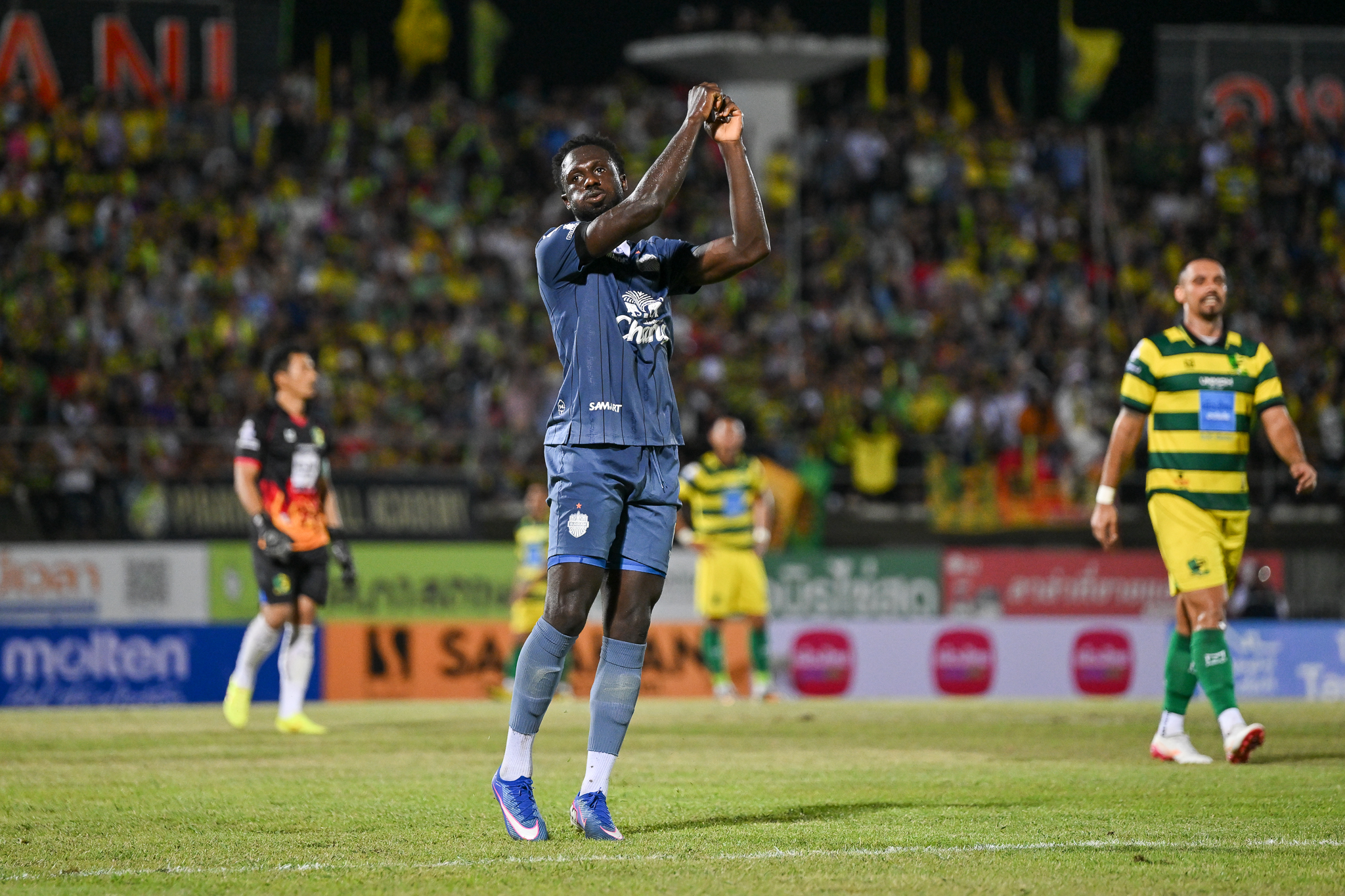 นาทีที่ 55 คิงสลีย์ ชินด์เลอร์ อาศัยจังหวะแนวรับ ปัตตานี เอฟซี ยังเสียสมาธิ ทุ่มเร็วให้ กิลเยร์เม บิสโซลี โหม่งชงให้ เอ็มมานูเอล โตกู ได้เข้ามายิงจ่อๆ แต่ทว่าดาวเตะชาวกานา ยิงพลาดในจังหวะนี้ หลุดข้ามคานออกหลังไปไกล
