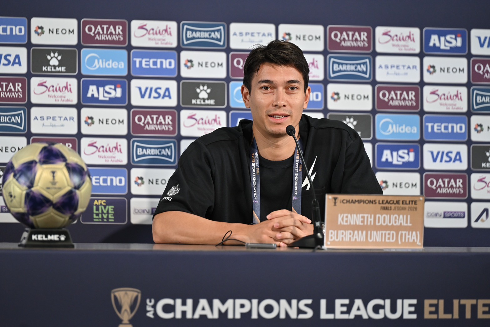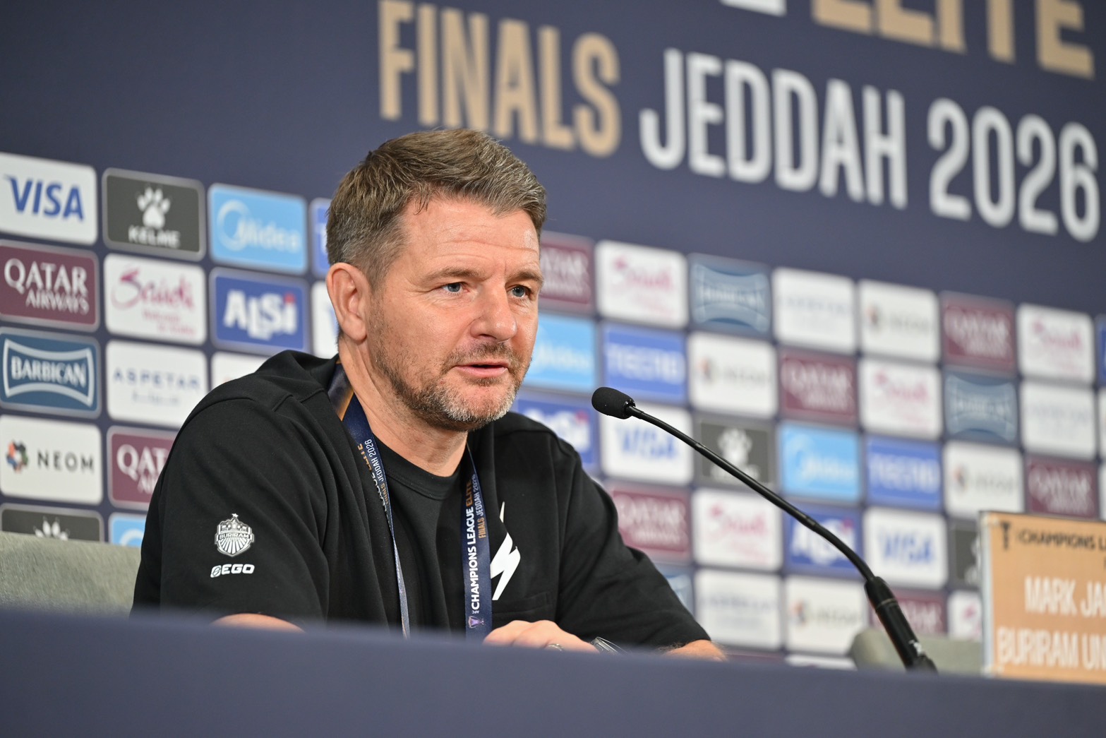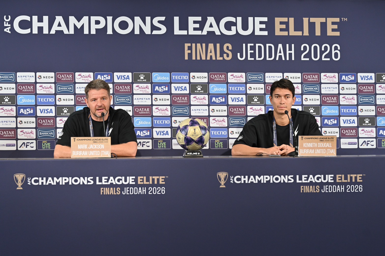 มาร์ค แจ็คสัน ตอบคำถามผู้สื่อข่าว หลังถูกสอบถามถึงความรู้สึก เมื่อเดินทางมาถึงที่กรุงเจดดาห์ ประเทศซาอุดีอาระเบีย ว่า “สิ่งที่ทำให้ผมประทับใจหลังจากมาถึงที่นี่ โดยเฉพาะอย่างยิ่ง นี่เป็นครั้งแรกของผม ไม่ใช่แค่ความยิ่งใหญ่ของการแข่งขันเท่านั้น สนามแข่ง การจัดการ และองค์ประกอบโดยรวม ล้วนยอดเยี่ยมทั้งหมด ผมไม่ได้คาดหวังอะไรที่ต่ำไปกว่านี้ แต่เมื่อได้มาอยู่ตรงนี้ และได้เห็นด้วยตัวเอง ทั้งระบบการจัดการ รวมถึงบรรยากาศในงานแถลงข่าว ขนาดของสนาม สิ่งอำนวยความสะดวก มันช่างยอดเยี่ยม และน่าตื่นเต้นมากๆ เรามีความหวังที่อยากเข้ารอบต่อไป และลงเล่นในรายการ ACL Elite 2025/26 ให้นานที่สุด ไม่ใช่แค่มาเพื่อซึมซับบรรยากาศเท่านั้น เราต้องใช้โอกาสนี้ ให้เกิดประโยชน์ ใช้เป็นการยกระดับผลงานของทีมให้ดีขึ้น”