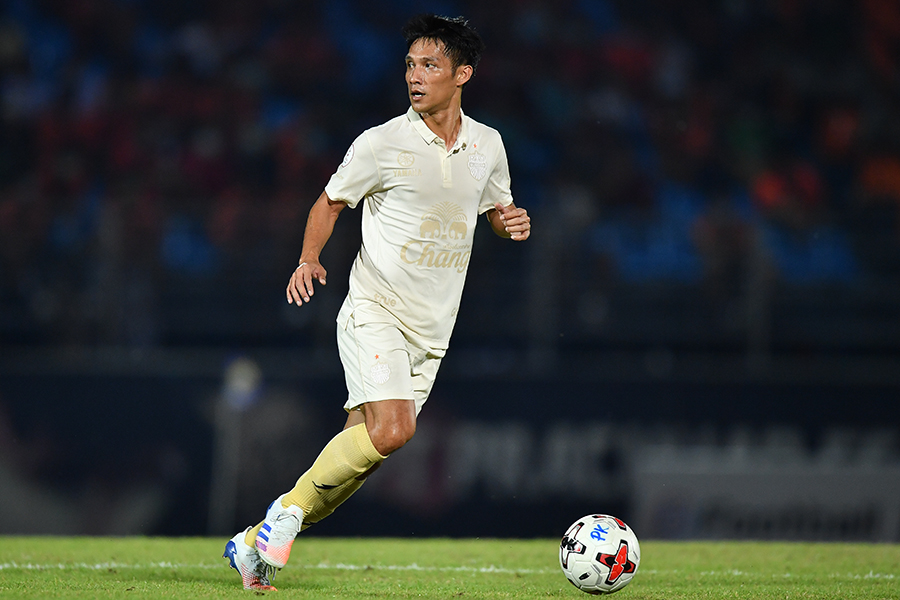 นาทีที่ 12 บุรีรัมย์ ยูไนเต็ด มาได้ฟรีคิกระยะอันตราย เควิน อินเกรโซ วิ่งเข้าไปปั่นบอลโค้งด้วยเท้าซ้าย บอลลอยข้ามกำแพง ขวัญชัย สุขล้อม รับบอลไว้ได้สบายหน้าปากประตู